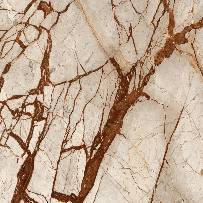 A porcelain slab resembles porcelain tile, created through high-temperature firing. Utilizing ink jet technology, porcelain can replicate various natural materials such as stone or wood with great accuracy. One of its advantages lies in its scratch-resistant surface and resistance to chemicals. It is considered as one of the most robust surface options available, suitable even for outdoor use.